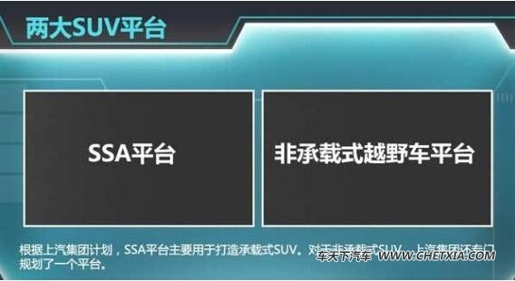 按照上汽集团SUV的战略规划:荣威“W3”与名爵小型SUV基于SSA平台,SSA平台将主要用来打造承载式SUV,其带宽最大能够打造轴距至2800mm的中型SUV。而换代荣威W5,上汽乘用车高层曾表示,上汽斥资13亿元(报价 参数 图片 论坛)用于换代荣威W5的研发,该车基于全新越野车平台打造,采用非承载式车身设计,将会带来新的驾驶体验。