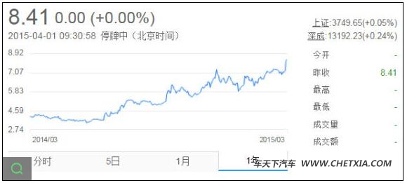 截止2015年3月31日收盘,一汽夏利股价上涨0.96%,报8.41元,相较2014年3月31日收盘价3.76元,该公司股价在一年之间翻倍有余。深交所公告称,一汽夏利股票将于2015年4月1日停牌一天,2015年4月2日复牌。