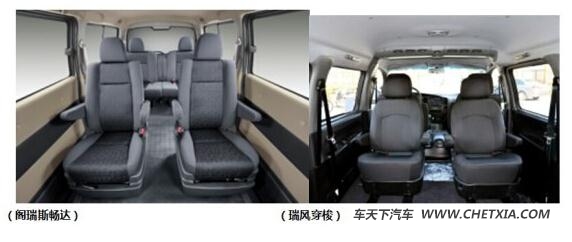 舒适度方面,两款车的第二排乘客舱均配备了侧翻座椅。而阁瑞斯畅达的第一排配备了双独立、有滑道的座椅,对比瑞风穿梭的联排固定式座椅而言,布局更灵活,乘客乘坐体验的舒适性也更有保障。
