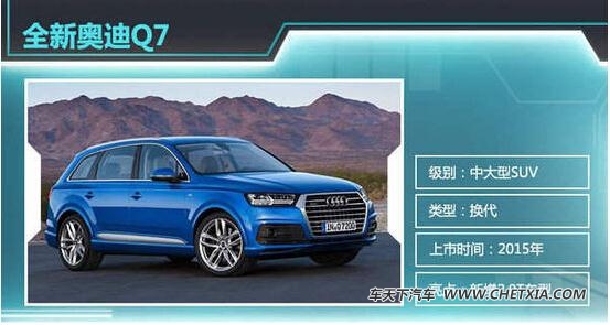 全新Q7基于奥迪全新MLB平台打造,车身质量较现款减重325公斤,油耗降低23%。全新Q7是首款完整体现全新奥迪家族式设计的车型,标志性的进气格栅与棱角分明的车身线条将成为未来几年奥迪的设计理念。新车在内饰设计上更具科技感,采用大量金属拉丝装饰面板。此外,新车除了3.0T版本外入门车型将搭载2.0T涡轮增压发动机,上市后入门车型将更具性价比。