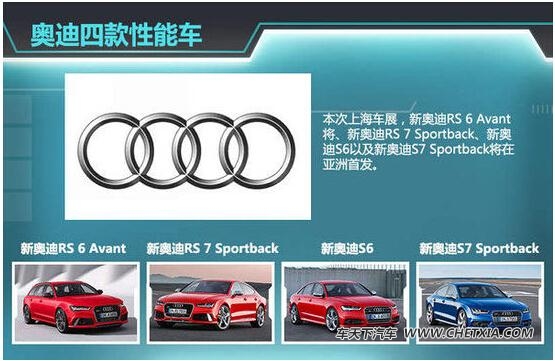 在本届上海车展上,奥迪还将发布新RS 6 Avant、新RS 7 Sportback、新S6和新S7 Sportback等四款性能产品。从而通过多级别性能产品的引入,为喜欢驾控感受的中国消费者提供更多选择。
