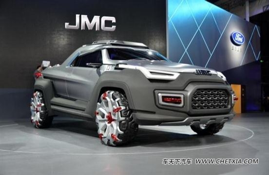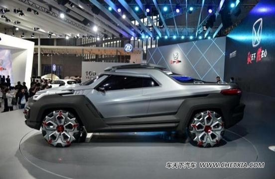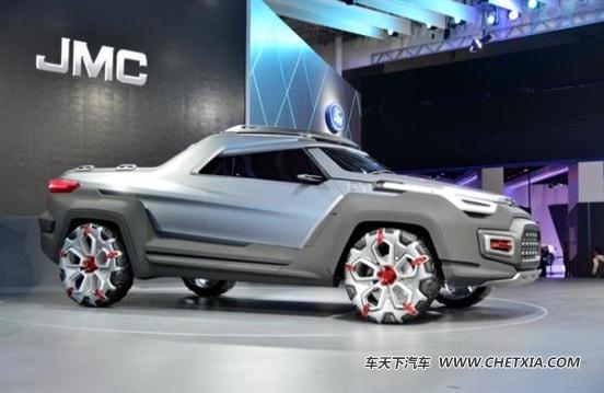 2015上海车展上,江铃汽车正式发布了一款域虎(报价 参数 图片 论坛)(报价 参数 图片 论坛)皮卡概念车,新车整体造型浮夸,轮圈的设计有些重口味。