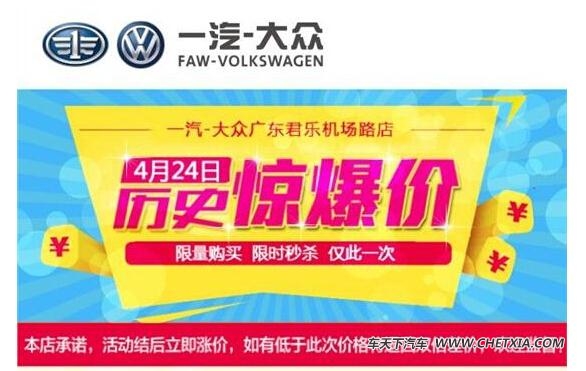 广东君乐店,一汽-大众广州首家授权经销商,隶属全国500强企业广物汽贸有限公司即将于在4月24日晚上19:00-21:00激情奏响大型闭馆团购盛宴暨2015新速腾(报价 参数 图片 论坛)上市鉴赏夜活动!