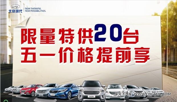 北京现代五一价格提前享受,限量特供车型20台,再不买车,你就后悔了!虽说喜欢就会放肆!爱却是克制!但心动不如行动,看车虽易,买车不易,广州龙腾,且买且放心!