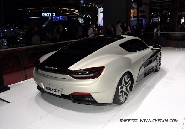 车尾部分,新车尾灯组采用LED光源设计,配合溜背式造型,使新车看起来非常运动。车身尺寸方面,前途K50的长宽高分别为4628/2064/1254mm,轴距达到了2650mm。车体采用铝合金框架式结构,车身采用碳纤维增强材料进行打造,整备质量约为1900kg。