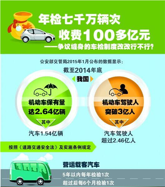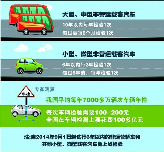 2014年5月,公安部与质检总局联合推出机动车检验改革新规——《关于加强和改进机动车检验工作的意见》,试行非营运轿车6年内免检,并推进检验机构社会化。