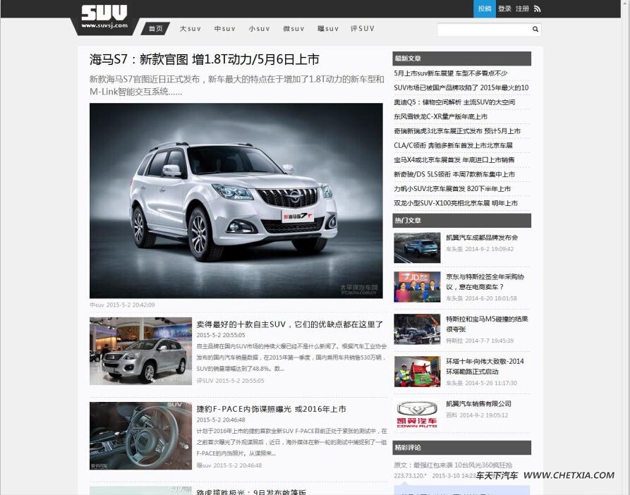 SUV世家中国最大SUV越野车汽车网2015年5月正式上线,suv世家是一家集合了suv上市,suv试驾,suv评测等专业的suv汽车的专业网站。suv试驾启用了全新的suv世家域名www.suvshijia.com 和 www.suvsj.com