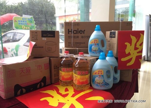 本次车展,上汽荣威为您准备的礼品,真的是够丰富哦!海尔空调、先科高清行车记录仪、长隆水上乐园门票、各类车辆保养套餐、智能电饭煲等等,借我两双手数不过来!车展第二台订单,郭先生就抽到空调大奖,运气不要太好!恭喜曬!(左上图被小编打马赛克的姐们,对唔住,不能把你闭眼的销魂照放出来
