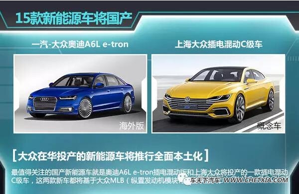 关于大众即将在华实现本土化生产的15新能源车型,其中最值得关注的就是奥迪A6L(报价 参数 图片 论坛) e-tron插电混动版和上海大众将投产的一款插电混动C级车,这两款新车都将基于大众MLB(纵置发动机模块化平台)生产。提到新能源车在华的本地化,大众集团所推行的将是全面的本地化,也就是新能源车所有的零部件和模块,都将在中国实现本地化生产。关于国产化率,海兹曼博士强调:“核心的零部件,包括我们的电池系统将来也会在中国开发和生产。”