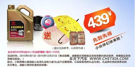 [导读] 【活动时间】2015年5月1日-2015年6月30日  【活动形式】天猫广汽丰田官方旗舰店  【活动内容】  1、凯美瑞基础保养套餐(限量)    2、高效防PM2.5空调滤清器立减活动(限