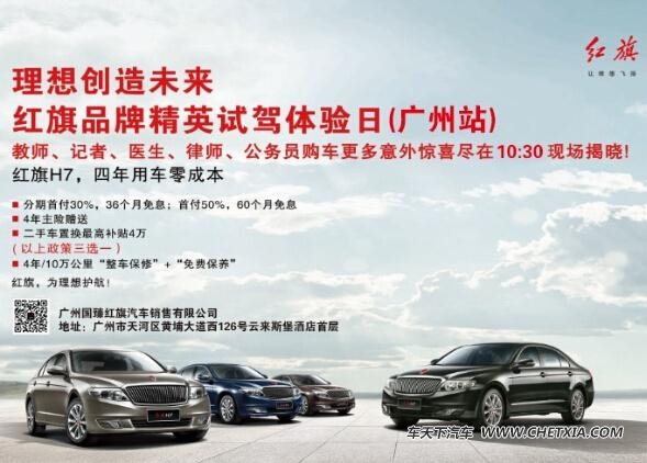 [导读] 5月16日(下周六)上午,广州国臻红旗店将举行“理想,创造未来”,2015红旗精英试驾体验日-广州站活动。