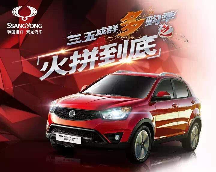 欢迎关注双龙汽车中国官方微信,双龙汽车公司(SSANG YONG Motor Company)附属韩国双龙集团,是以制造四轮驱动汽车为主,是世界第三大专业SUV生产商。欢迎阁下光临各地双龙4S店试驾体验!