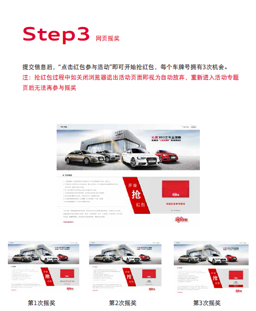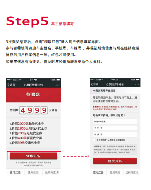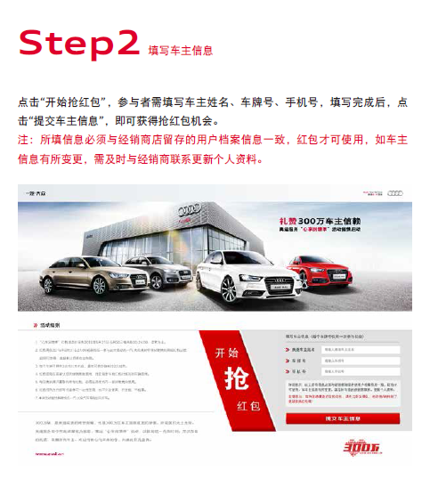 ● 红包请在广州锦龙奥迪使用,且仅限参与摇红包时填写的车辆使用。