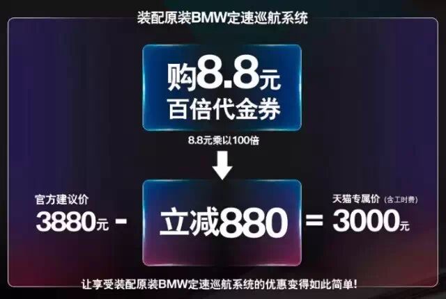以节能高效,为舒适安全护航,原装BMW定速巡航系统“百倍代金券”驾悦来袭。