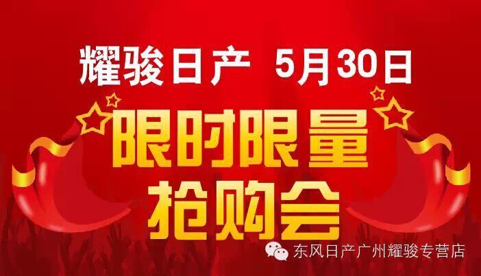 [导读] 耀骏日产诚邀您参加东风日产厂价抢购会 东风日产广州耀骏专营店 公司资讯和品牌信息,与你一同开启东风日产美好人车生活的新时代! 东风日产耀骏专营店喊你来团购,Duang~100抵500! 5月30日东风日产厂价直销会!耀骏日产约定您!此次活动东风日产全车系车型将突破4S店销售底价工厂直销,超钜惠回馈广大客户,史上最疯狂的让利团购价格。