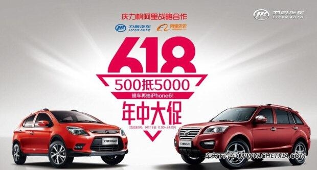 为庆祝力帆集团与阿 里巴 巴达成战略合作,力帆汽车天 猫旗舰店特举办本次年中大促活动。凡6月18日0:00—24:00通过天 猫旗舰店交500元定金,成功预订力帆X50、X60的用户,即可享受提车时在指导价基础上抵扣 5000元车款的超大优惠。成功提车的用户,还可在旗舰店首页参加提车抽奖活动,礼品包括iphone6 、apple watch、1000元油卡等缤纷好礼。