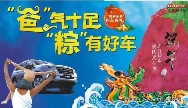 有这么一个人,不假颜色,却又背地里默默付出——这个人就是父亲。有这么一种爱,深沉严肃,却又慈爱万分——这种就是父爱。一年一度的端午节与父亲节又将接踵而至,为回馈广大客户的支持和厚爱,新东联哈弗届时开启““爸”气十足 “粽”有好车”活动,钜惠好礼送不停!