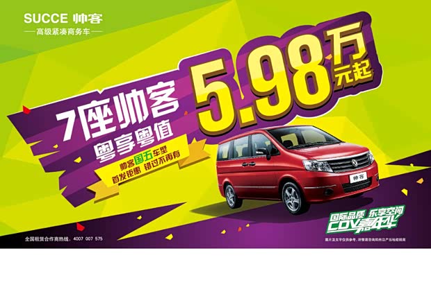 快让郑州日产帮您消消火,让降价风暴席卷夏日,一扫广东上空的阴霾吧!2015年6月1日-8月31日期间,郑州日产在广东所有郑州日产专营店,针对帅客1.5L国五全系车型推出“粤享粤值“活动,购买郑州日产帅客1.5L国五全系车型均可享受此项优惠,七座国五帅客低至5.98万的等你来抢。特价风暴,粤享粤值!帅客陪您,清凉一夏!