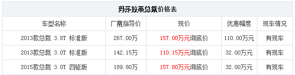 玛莎拉蒂总裁 最高优惠110万元 有现车