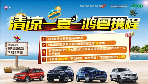 报价 参数 图片 论坛)体, arial, tahoma, sans-serif; padding-left: 0px; margin: 0px; letter-spacing: normal; padding-right: 0px; background-color: rgb(255,255,255); text-indent: 0px; -webkit-text-stroke-width: 0px" data-unuse="1">炎炎夏日来袭,我们的爱车迎来了高温的考验!你是否考虑为您的爱车在夏暑中降降温呢?爱随行,悦常在!清凉夏季,鸿粤携程!Jeep广州鸿粤夏季清凉关怀服务活动正式启动。用清凉的服务和冰爽的优惠助您和爱车畅快出行!