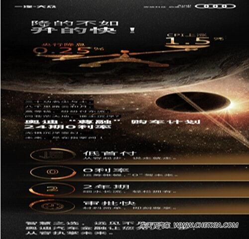 [导读] 奥迪“尊融”购车计划24期零利率近日央行降息,整个舆论场都为之沸腾,也让我们对未来多了一份期待。
