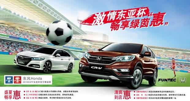 不管你的选择是主流中级车全新思铂睿,还是城市SUV王者CR-V,亦或是是天生运动范儿的CIVIC以及时尚性感的JADE,东风Honda都能带你一同酣畅东亚杯,热享2015年夏季的别致风情。心动不如行动,快把心仪座驾收进碗里吧!
