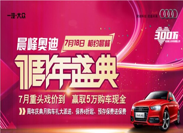 活动主题:晨峰奥迪1周年店庆狂欢盛典