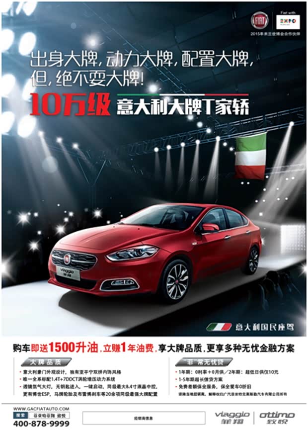 现在起凡购买菲亚特菲翔(报价 参数 图片 论坛)、致悦全系车型,立送1500L油,让你不再担心买车之后的“养车贵”难题,1年油费轻松赚!赚!赚!